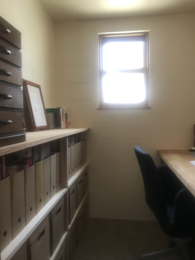 - 2畳の部屋→1階の納戸だった部屋。元々は洋服類を置いていたが、コロナ禍にオンライン会議用に仕事部屋として活用するようになる。